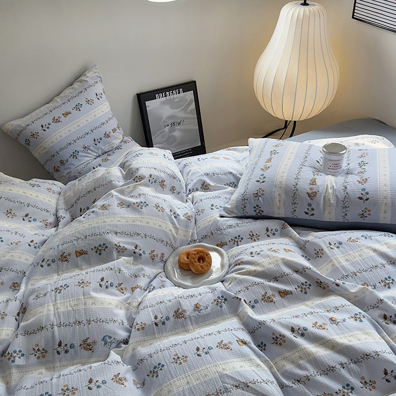 Vierteiliges Bettwäscheset aus gewaschener Baumwolle
